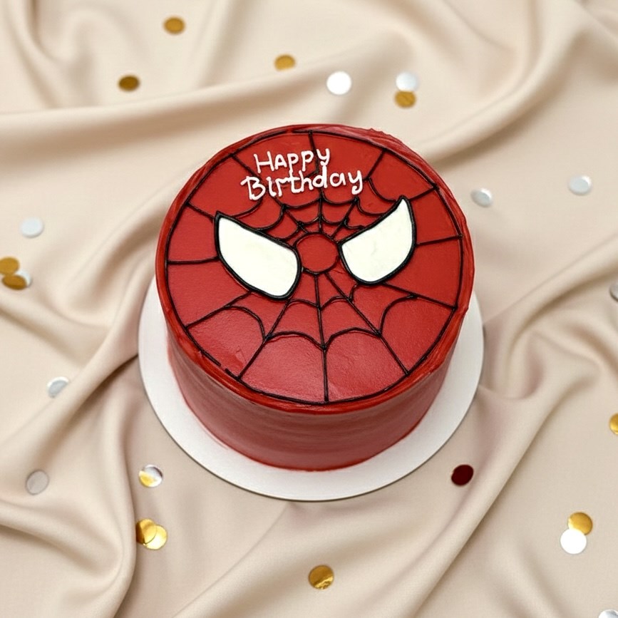 Яркий и эффектный торт на заказ в стиле Человека паука — отличный выбор для дня рождения мальчика и поклонника супергероев. Торт выполнен в насыщенном красном цвете и украшен узнаваемым рисунком паутины и маской героя, что сразу создаёт атмосферу праздника и приключений.