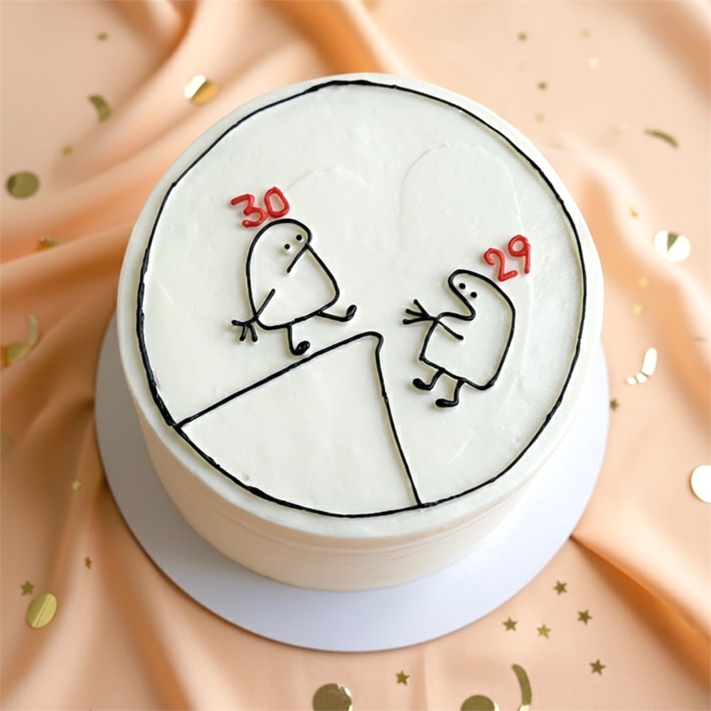 Торт ко дню рождения с милым лаконичным рисунком.