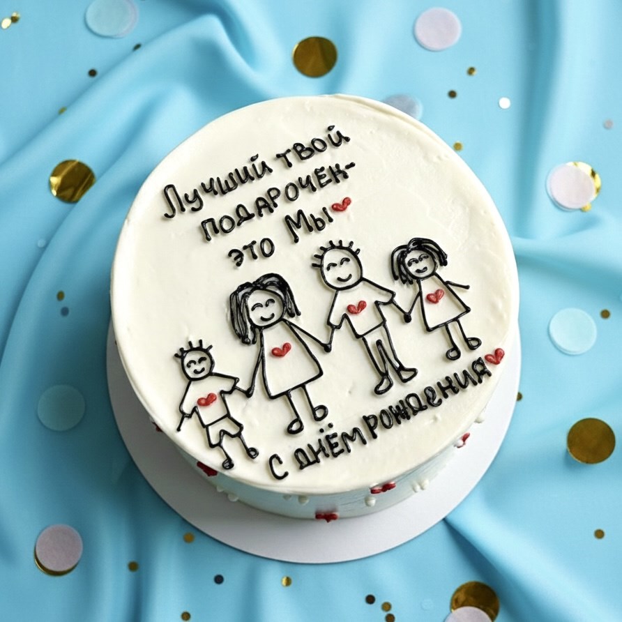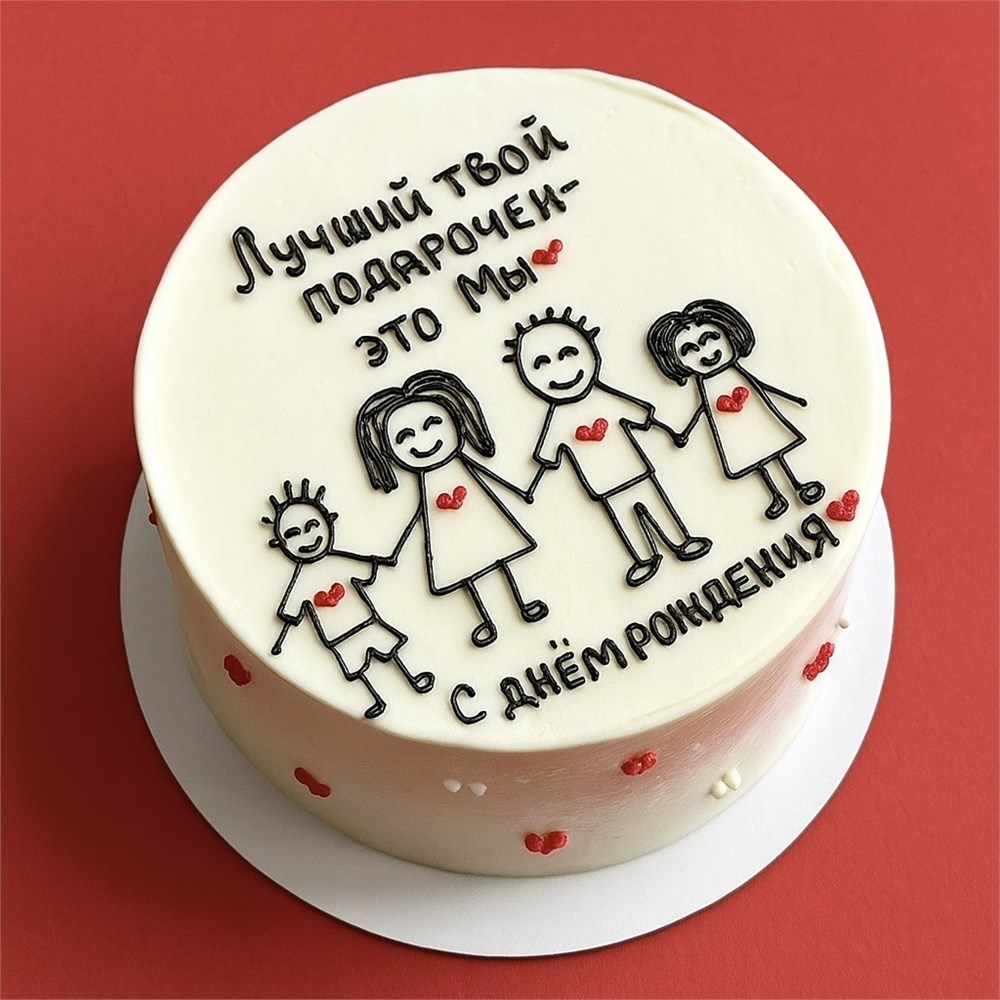 Идеальный выбор для тёплого семейного поздравления! Милый и душевный торт на день рождения с трогательной надписью и рисунком станет настоящим сюрпризом для ваших близких.