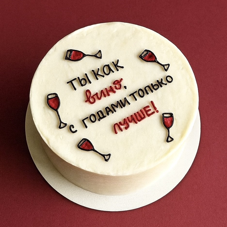 Современный и стильный торт на заказ с посланием: «Ты как вино, с годами только лучше!» — идеальный подарок для дня рождения, юбилея или дружеской вечеринки.