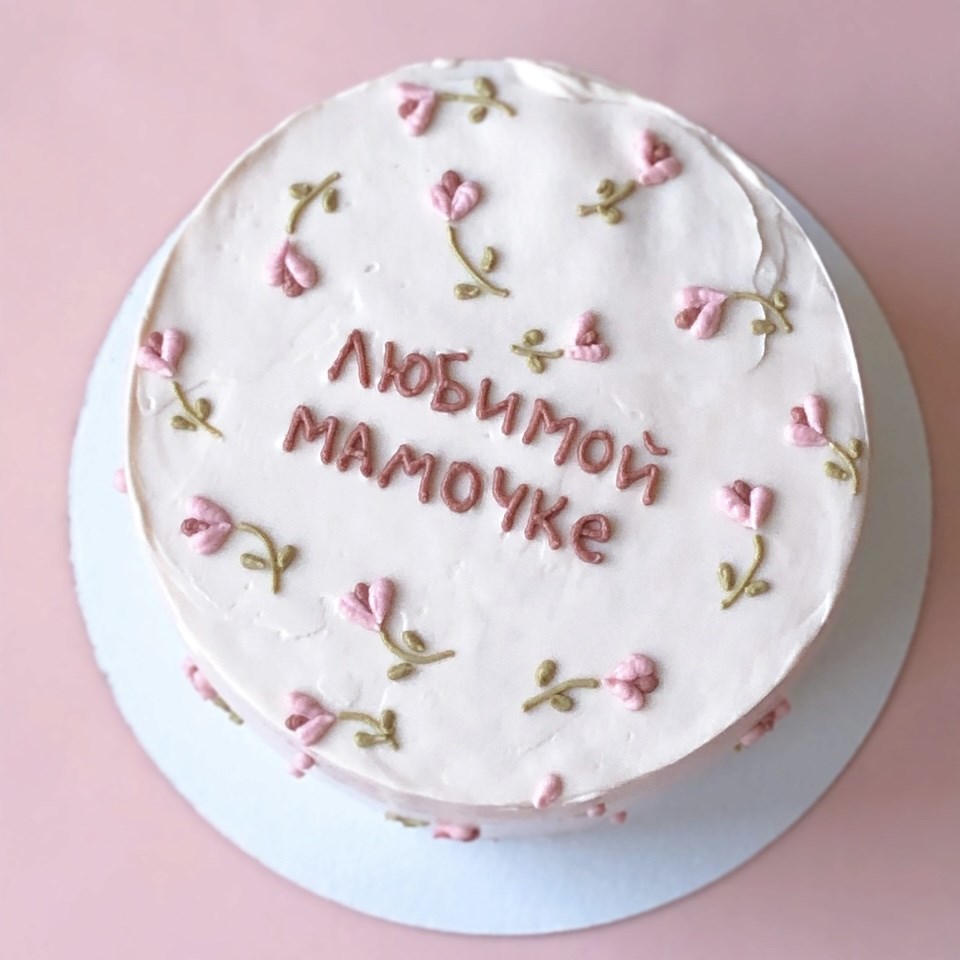 Тортик с цветочным рисунком и надписью, надпись можно изменить