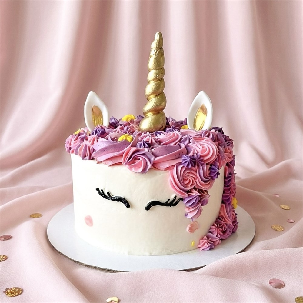 Яркий и сказочный торт на заказ в виде единорога — идеальный выбор для детского праздника, дня рождения девочки или тематической вечеринки. Торт украшен нежным кремовым декором и аккуратными деталями из мастики: ушки, рог и выразительные элементы создают узнаваемый образ единорога и дарят ощущение волшебства.
